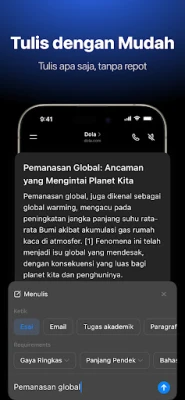 Menulis kini lebih sederhana dari sebelumnya. Dola menyusun draf email profesional, postingan media sosial yang menarik, esai mendalam, atau CV yang menonjol, dengan cepat dan jernih. Jika Anda menghadapi hambatan penulis atau kesulitan memulai, cukup berikan beberapa petunjuk, dan biarkan Dola mengubah gagasan Anda menjadi teks yang koheren dan persuasif. Baik untuk tuntutan pekerjaan, kebutuhan akademik, atau sekadar eksplorasi pribadi, Dola hadir untuk menjadikan setiap proses lebih cepat, lebih cerdas, dan jauh lebih menyenangkan.