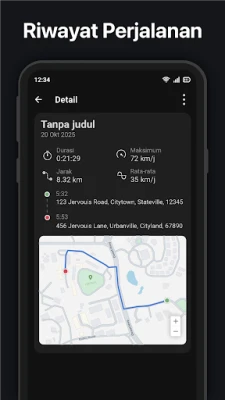Lebih dari sekadar pengukur kecepatan, GPS Speedometer & Odometer juga berfungsi sebagai pencatat perjalanan yang komprehensif. Pantau total jarak yang ditempuh, durasi setiap perjalanan, dan kecepatan rata-rata Anda dengan mudah. Fitur odometer dan pengukur perjalanan yang dapat diatur ulang kapan saja memungkinkan Anda melacak konsumsi bahan bakar atau memantau progres harian dengan akurasi tinggi. Selain itu, rasakan kenyamanan dan keamanan berkendara di malam hari dengan Mode Tampilan Head-Up (HUD). Fitur inovatif ini memproyeksikan kecepatan Anda ke kaca depan mobil, memberikan visibilitas yang jernih dan bebas gangguan, sehingga Anda dapat tetap fokus pada jalan.