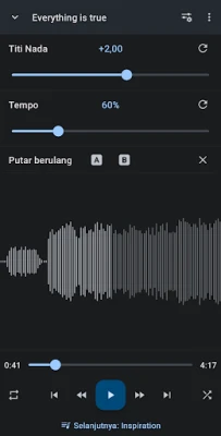 Music Speed Changer memungkinkan Anda mengubah kecepatan audio real-time tanpa memengaruhi titi nada, atau sebaliknya. Latih lagu dengan melambatkan dan mengulang bagian musik, bahkan memutar audio terbalik. Alat lengkap untuk latihan dan eksplorasi suara Anda.