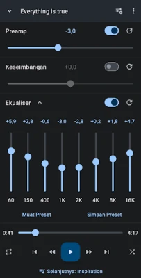 Tak hanya itu, Music Speed Changer melangkah lebih jauh dengan kemampuan pemisahan audio revolusioner, memungkinkan Anda mengisolasi vokal, drum, bass, dan instrumen lainnya dari lagu apa pun—ideal untuk remixing atau studi mendalam (membutuhkan perangkat dengan spesifikasi tertentu). Personalisasikan pengalaman suara Anda dengan ekualiser grafis 8-pita, kontrol preamp, dan keseimbangan. Setelah penyesuaian sempurna, simpan kreasi Anda dalam format MP3, FLAC, atau WAV berkualitas tinggi, baik itu seluruh trek atau potongan loop yang disempurnakan. Dengan antarmuka desain material yang modern, pilihan tema terang/gelap, dan perekam audio terpasang, aplikasi ini dirancang untuk kemudahan penggunaan dan fungsionalitas maksimal, tanpa perlu menunggu proses parsing berkas.