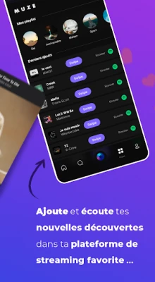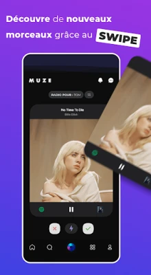 Melalui Muze, perjalanan eksplorasi musik Anda akan terasa intuitif dan penuh kesenangan. Cukup usap layar untuk menelusuri cuplikan 30 detik dari berbagai kategori musik pilihan Anda. Setiap usapan adalah kesempatan emas untuk menemukan permata tersembunyi, di mana melodi dan irama baru menanti untuk menyelaraskan diri dengan preferensi Anda. Jika sebuah potongan musik berhasil memikat telinga Anda, sebuah usapan ke kanan akan menandainya sebagai favorit Anda, menjamin jejak musik baru yang berharga.