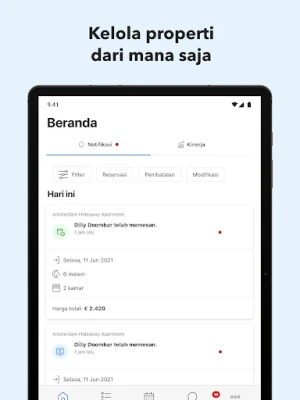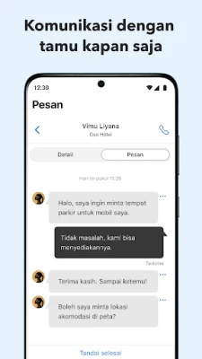 Awali hari Anda dengan gambaran lengkap tentang aktivitas penting. Aplikasi Booking.com ini menyajikan ringkasan instan mengenai kedatangan dan keberangkatan tamu, reservasi baru yang masuk, pembatalan terkini, perubahan jadwal, hingga ulasan terbaru dari para tamu. Lebih dari sekadar informasi, interaksi menjadi lebih mudah: hubungi tamu Anda secara real-time melalui fitur obrolan langsung. Manfaatkan juga beragam templat respons yang sudah diterjemahkan secara profesional untuk menanggapi pertanyaan umum dengan cepat dan efisien, meningkatkan kepuasan pelanggan dengan responsivitas prima.