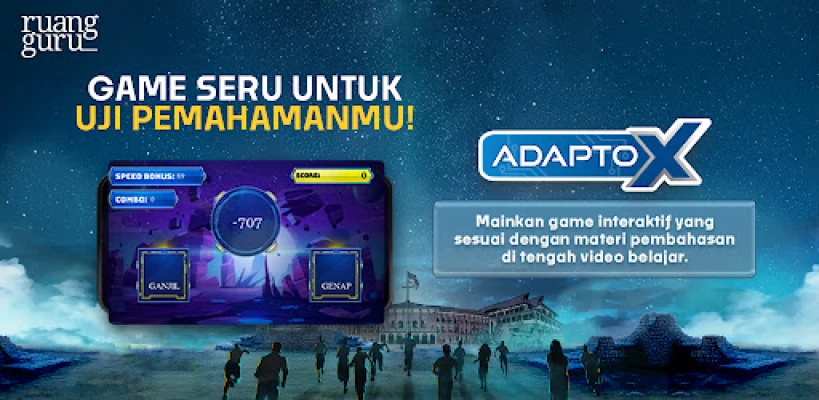 Dalam ekosistem digital Ruangguru, kamu akan menemukan ruangbelajar, sebuah inovasi belajar yang disesuaikan untuk setiap individu. Nikmati Adapto, video interaktif yang menyesuaikan pemahamanmu, atau jelajahi Banksoal dengan ratusan ribu pertanyaan untuk mengasah kemampuanmu menghadapi ujian penting seperti PTS, PAS, bahkan SNBT. Belum lagi fitur Playlist Belajar dan Rangkuman yang membantu mengatur materi, serta dukungan penuh untuk Kurikulum Merdeka. Untuk SD, hadir animasi ceria Dafa dan Lulu dengan Zona Berlatih. Sementara di jenjang SMP-SMA, kamu bisa bermain sambil belajar dengan AdaptoX dan memahami konsep kilat. Bagi pejuang UTBK-SNBT, UTBK Center kami menawarkan strategi terbaru, video pembelajaran, dan simulasi tryout berbasis IRT, lengkap dengan Tes Minat & Bakat serta Rasionalisasi SNBP.